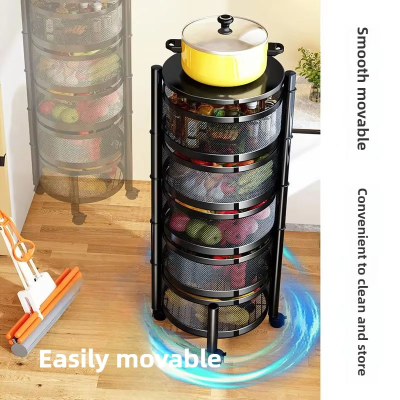 Keep your kitchen, bathroom, or living space neat and organized with this versatile Wheeled Rotating Storage Rack. Made from strong carbon steel, this shelf offers reliable support for fruits, vegetables, toiletries, or household items. Available in 3, 4, or 5 layers, it provides flexible storage options to suit your needs. The foldable design saves space when not in use, while the smooth-rolling wheels make it easy to move around. Its modern look in black or white fits seamlessly into any home style.